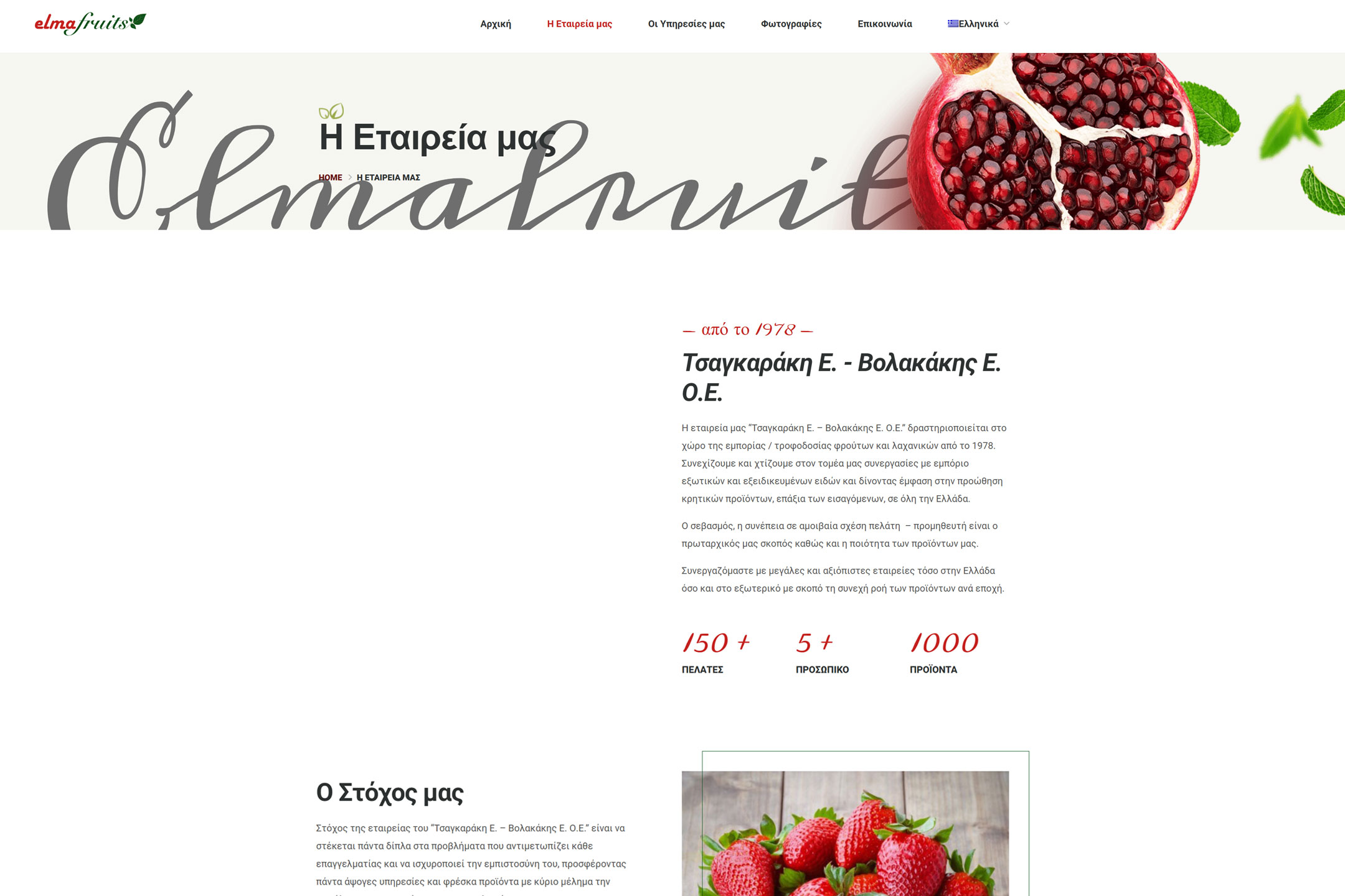 Το 2021 σχεδιάσαμε και υλοποιήσαμε τη νέα εταιρική ιστοσελίδα της Elmafruits, με στόχο τη δυναμική ψηφιακή παρουσίαση της εταιρείας και των υπηρεσιών της.